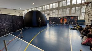 У петак, 13. фебруара, у нашој школи је постављен Мобилни планетаријум. Ученици су имали прилику да се упознају са чаробним светом свемира и доживе јединствено искуство посматрања звезданог неба.