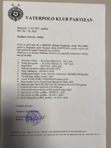 Страхиња је играо на Државном првенству Србије у ватерполу за 2004. годиште, које је одржано у Крагујевцу. Само троје из генерације, а међу њима и наш Страхиња, изабрани су да играју са старијима од себе.