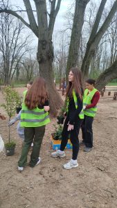 Након кратке презентације и предавања у Свечаној сали, ученици су изашли у школско двориште, где су заједно са члановима удружења уклонили осушена стабла јеле и заменили их младим садницама храста, пароције и јоргована, док је на ободима дворишта засађена ловор-вишња.